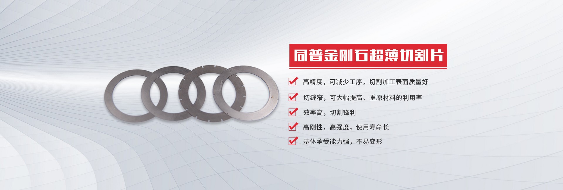 同普超硬材料主要生產金剛石/CBN精密超薄切割片、金屬CBN砂輪、超硬材料刀具,產品廣泛應用于磁性材料、陶瓷、光學玻璃、半導體、硬質合金加工等領域。